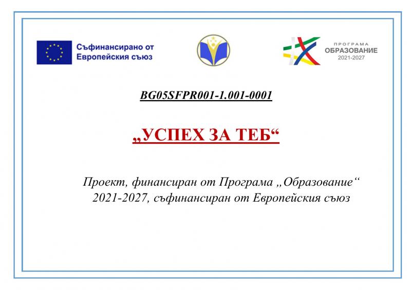 Проект № BG05SFPR001-1.001-0001 „Успех за теб“ 2025/2026