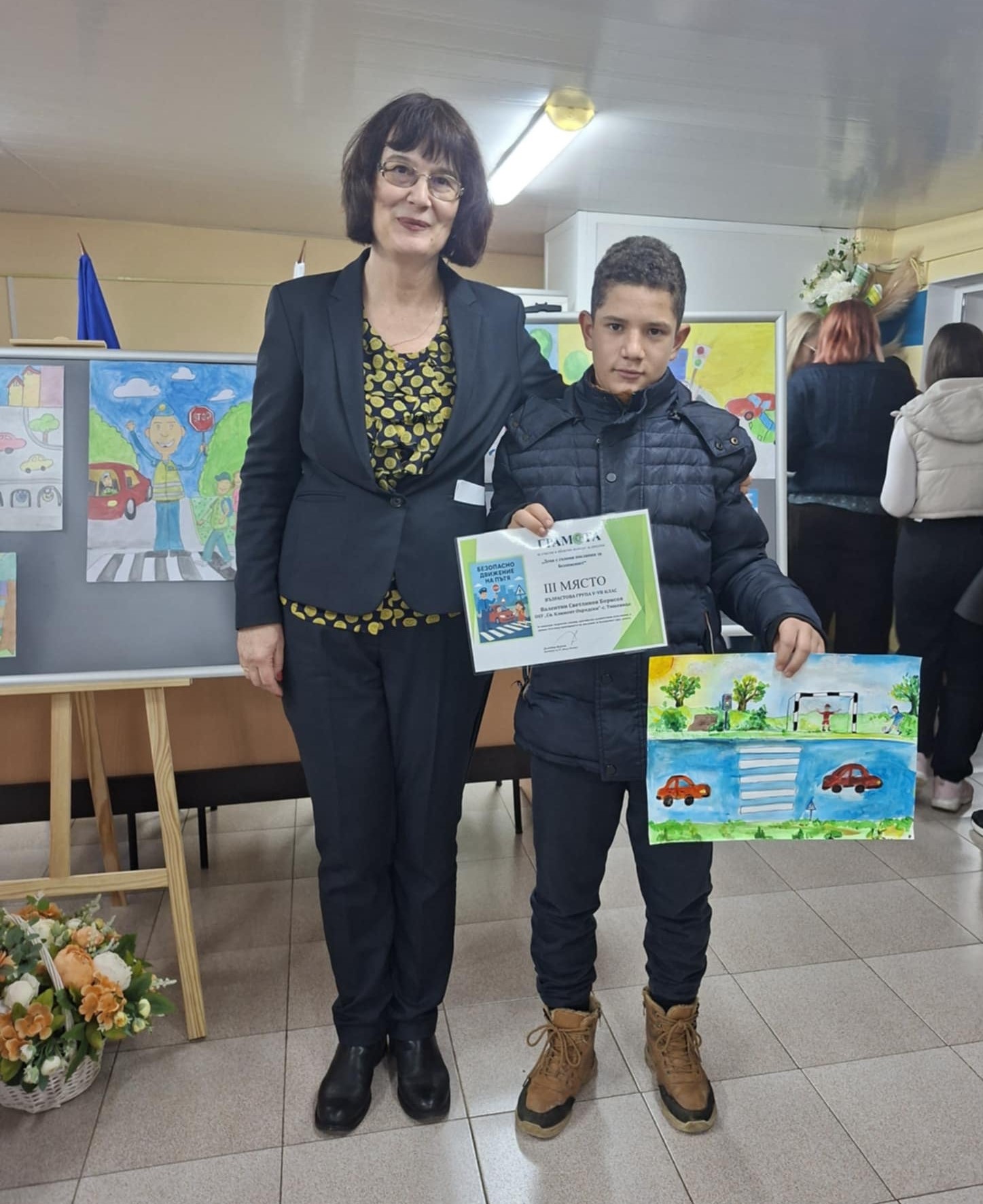 С гордост споделяме, че нашият ученик Валентин Светлинов Борисов от пети клас клас спечели III място в областния конкурс за рисунка „Деца с големи послания за безопасност“, категория 5.–7. клас.